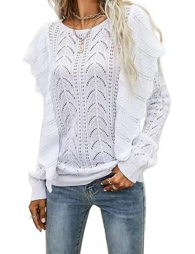 Ruffle Detail Sweater In White