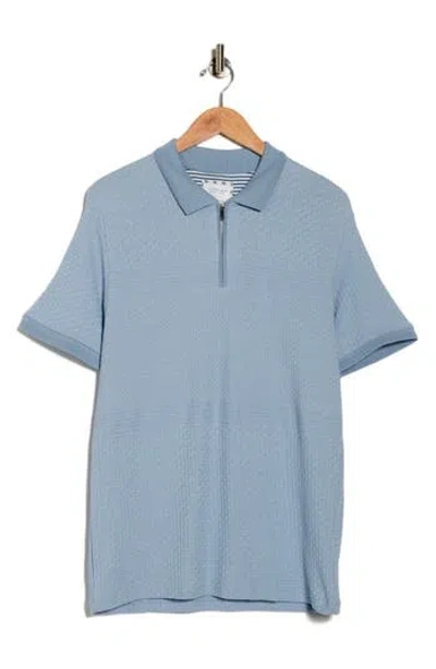 Tipped & Textured Half Zip Polo In Blue
