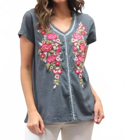 Leona V-neck Tee In Dark Grey In Animal Print