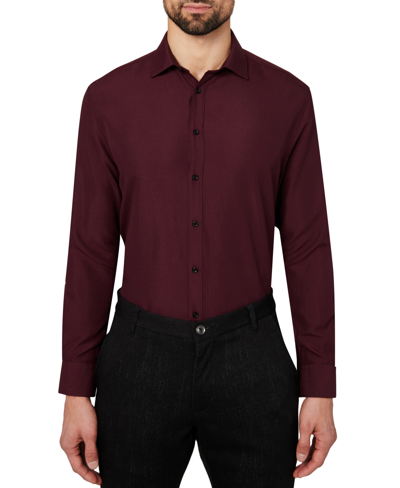 Men's Regular Fit Solid Wrinkle Free Performance Dress Shirt In Burgundy