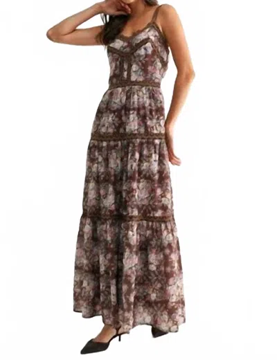 Boho Bloom Tiered Maxi Dress In Brown