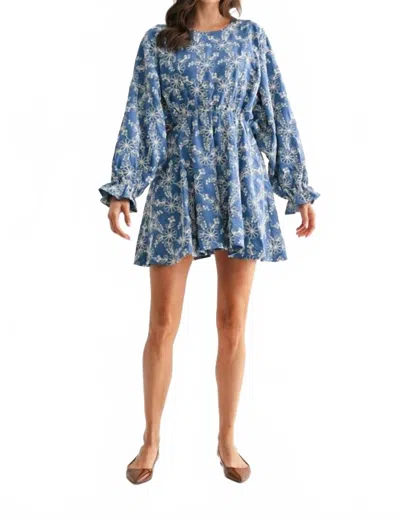 Embroidered Long Sleeve Mini Dress In Blue