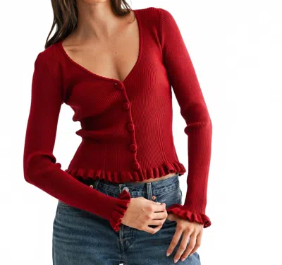 Ribbed Button Up Cardigan In Burgundy In Red