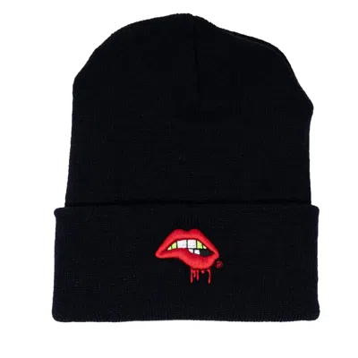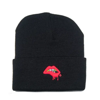 Women's Black Lips Beanie / Cherry Red Lips