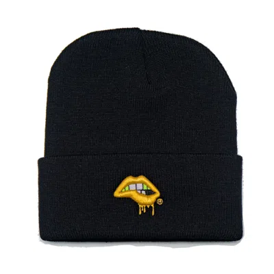 Women's Black Lips Beanie / Pure Gold Lips