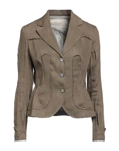 Woman Blazer Khaki Size 4 Linen, Viscose In Beige