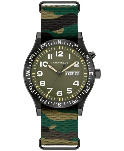 Men's Vintage Casual Lite Up Camouflage Nylon Strap Watch, 39mm In Green