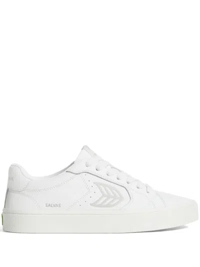 Salvas White Leather Black Logo Sneaker Men In White/black