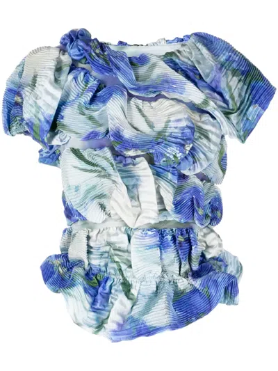 Floral-print Plissé-effect Blouse In Black