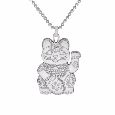 Large Silver Lucky Cat Pendant Necklace