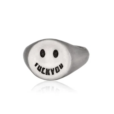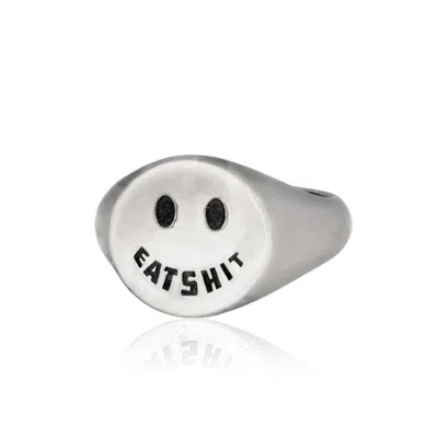 Men's Eat Shit Smiley Ring In Sterling Silver