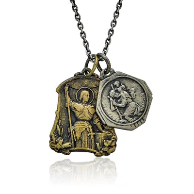 Men's Grey / Gold / Silver Travelin' On - St. Christopher With Joan Of Arc Necklace In Sterling Silv