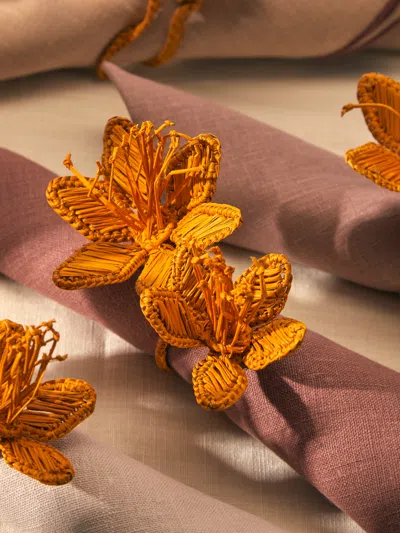 Florencia Handwoven Werregue Palm Napkin Rings (set Of 4) In Orange