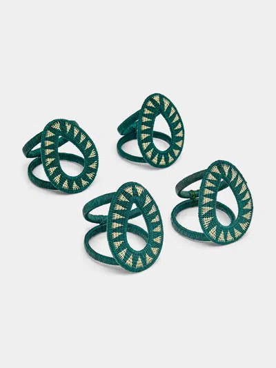 Gota Handwoven Werregue Palm Napkin Rings (set Of 4) In Green