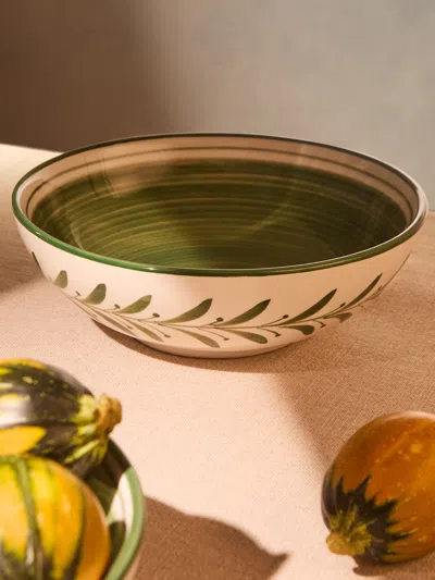 Helecho Hand-painted Ceramic Serving Platters (set Of 2) In Green