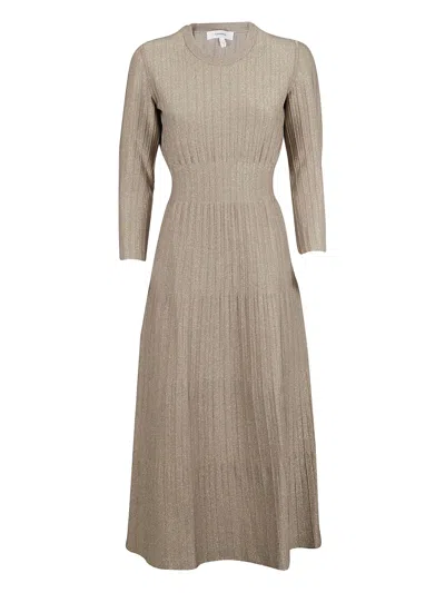 Ribbed Pleated Midi Dress In Brown