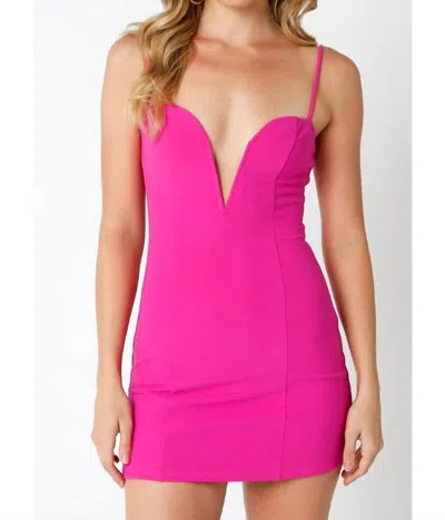 The Kaia Deep V Mini Dress In Fuchsia In Pink