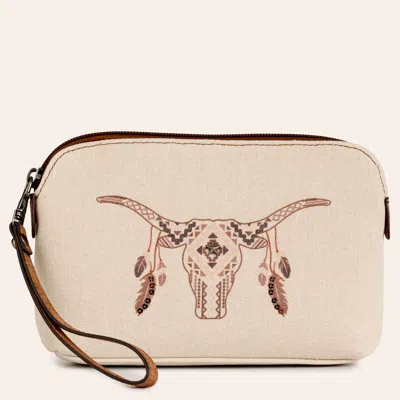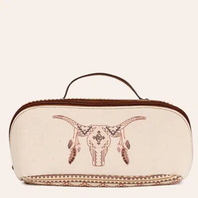 Cream Longhorn Skull Large Cosmetic Bag In Neutral