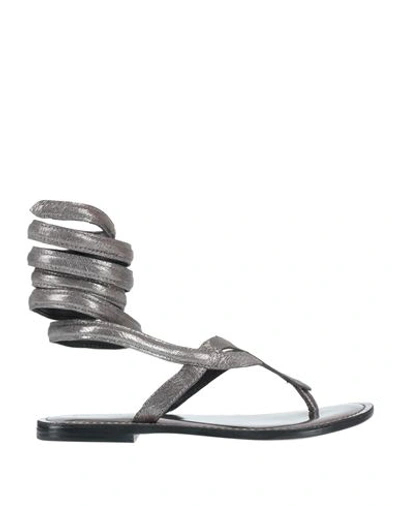 Woman Toe Strap Sandals Lead Size 9 Soft Leather In Grey