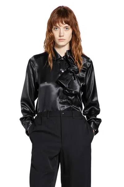 Shiny Satin Bowtie Shirt In Black