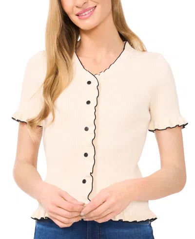 Ruffle Sleeve Textured Knit Top In New Ivory