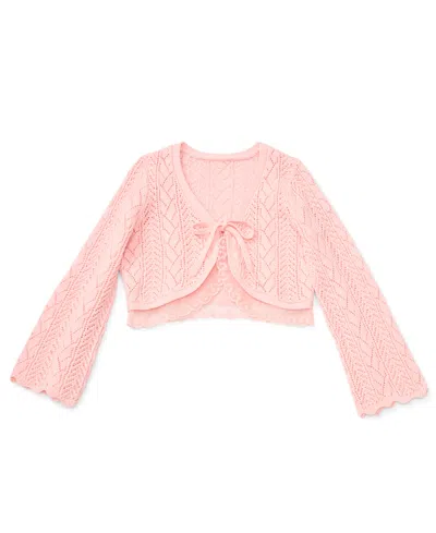 Kids' Girls/bernard Chaus Inc Girls' 7-16 Long-sleeve Tie-front Pointelle Cardigan In Pink