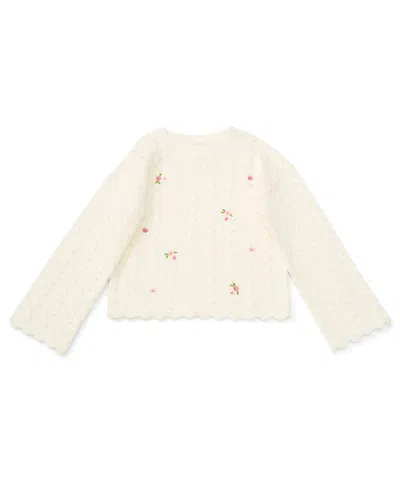 Kids' Girls/bernard Chaus Inc Girls' 7-16 Pointelle Embroidered T-shirt In Neutral