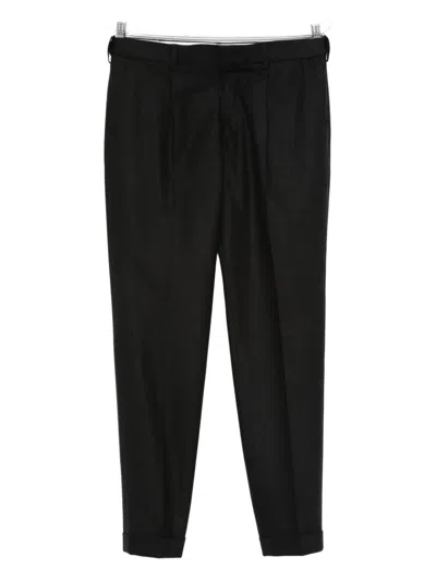Tapered Wool Trousers Pleated Design In Black