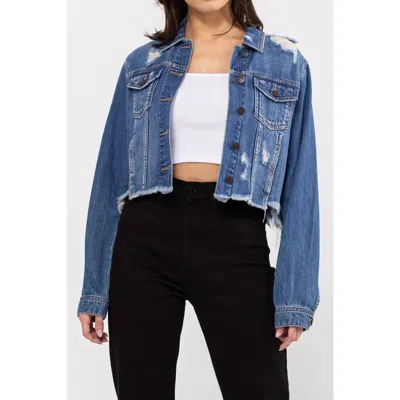 Katrina Destroyed Fitted Denim Jacket In Dark Denim In Blue