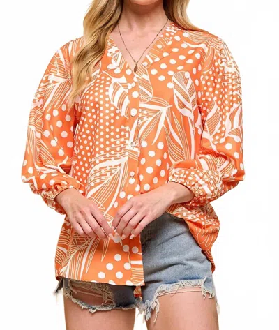 Casual Color Print Blouse In Orange