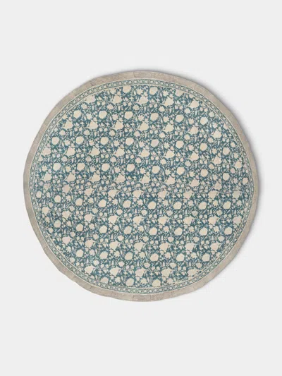 Indian Rose Block-printed Linen Round Tablecloth (86.5in/2.2m)