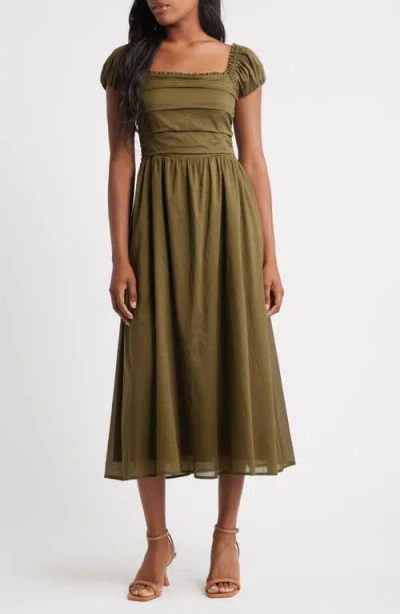 Gathered Bodice Cotton Midi Dress In Green