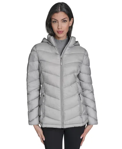 Women's Packable Hooded Puffer Coat, Created For Macy's In Gray