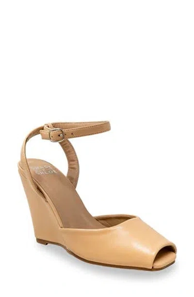 Chase And Chloe Peep Toe Wedge Sandal In Brown