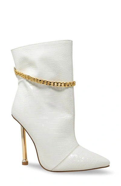 Chain Embellished Stiletto Heel Bootie In White Croc