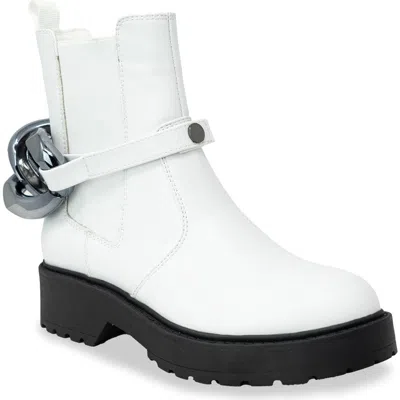 Chase And Chloe Chunky Chain Strap Lug Boot In White