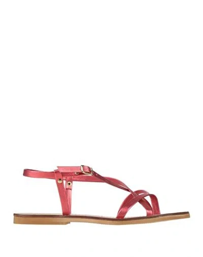 Woman Thong Sandal Red Size 8 Leather