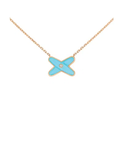 Rose Gold, Diamond And Turquoise Jeux De Liens Pendant Necklace In Blue