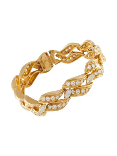 Pre-owned 18k Yellow Gold Wave-link Diamond Bracelet