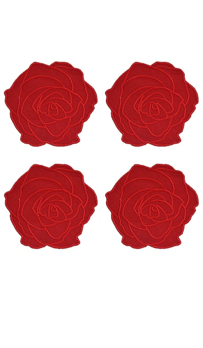 Red Rose Cocktaill Napkins Set Of 4 In N,a