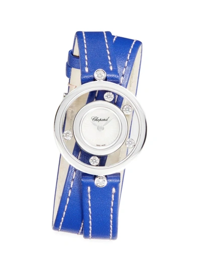 Women's Happy Diamonds Icons 18k White Gold, Diamond, & Leather Wrap-strap Watch In Blue
