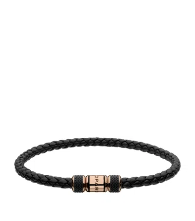 Leather And Rose Gold Classic Racing Bracelet In Black