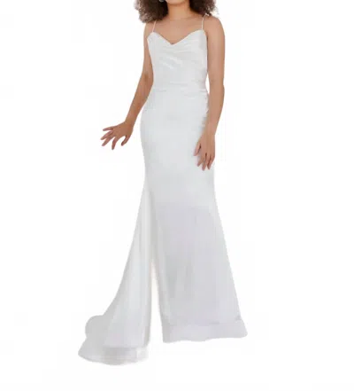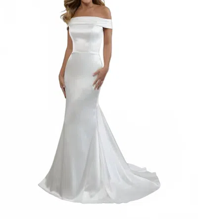 Long Sleeve Wedding Gown In Ivory/nude In Multi