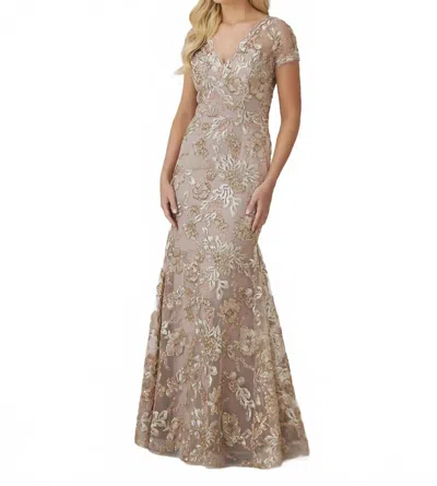 Sequin Embroidery Long Dress In Rose Gold In Gray