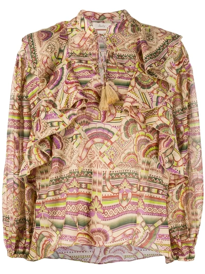 Nina Printed Cotton And Silk-blend Blouse In Neutrals