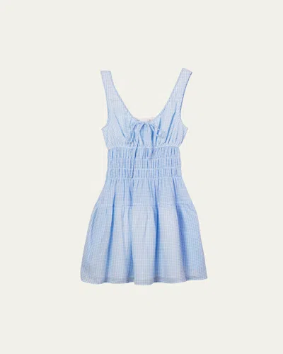Gianluca Gingham Smocked Mini Dress In Blue