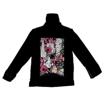Women's Teddy Denim Moto Jacket - Black Gunmetal
