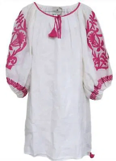 Pre-owned Benaras By Women's Vita Fleur Narrow Sleeve Dress In White/fuschia -