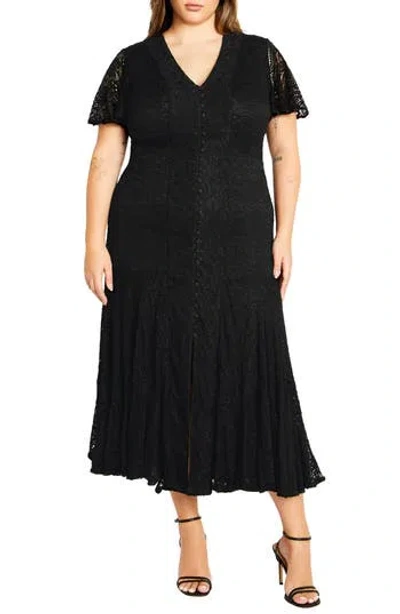 Kianna Sheer Long Sleeve Maxi Dress In Black