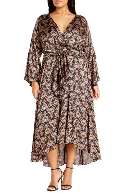 Lexi Print Faux Wrap Maxi Dress In Black